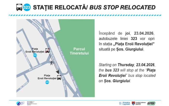 Începând de sâmbătă, 18.04.2026, autobuzele liniilor 100, 203, 205, 331, 331B și 335 vor circula pe culoarul unic dedicat transportului public creat pe Bulevardul Regele Mihai I, pe tronsonul cuprins între Arcul de Triumf și [...]