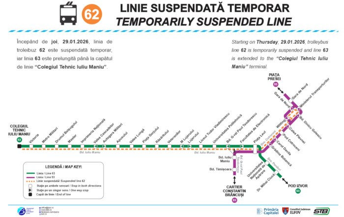 Lucrări edilitare pe Bd. Iuliu Maniu: linia 62 – suspendată, linia 63 – prelungită la „Colegiul Tehnic Iuliu Maniu”