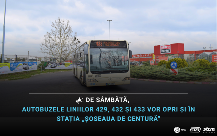 De sâmbătă, autobuzele liniilor 429, 432 și 433 vor opri și în stația „Șoseaua de Centură”