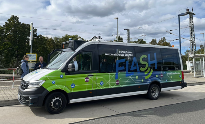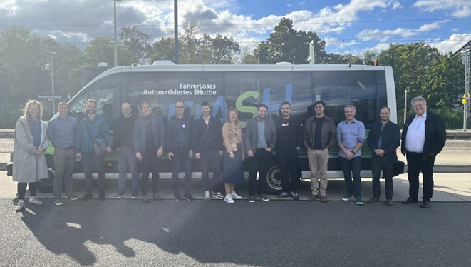 Participanții au avut ocazia să testeze un vehicul autonom din cadrul proiectului local FLASH, implementat în nordul Saxoniei pentru a sprijini comunitățile cu acces limitat la transport. Shuttle-ul conectează zonele turistice cu localitățile din apropiere și reprezintă un exemplu de soluție de mobilitate modernă, sustenabilă și eficientă.