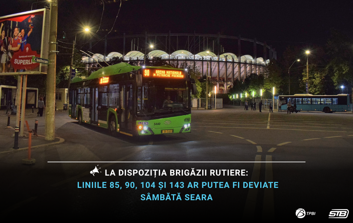 TPBI precizează că liniile 85, 90, 104 și 143 ar putea fi deviate, numai dacă situația o va impune, la dispoziția Brigăzii Rutiere de Poliție.