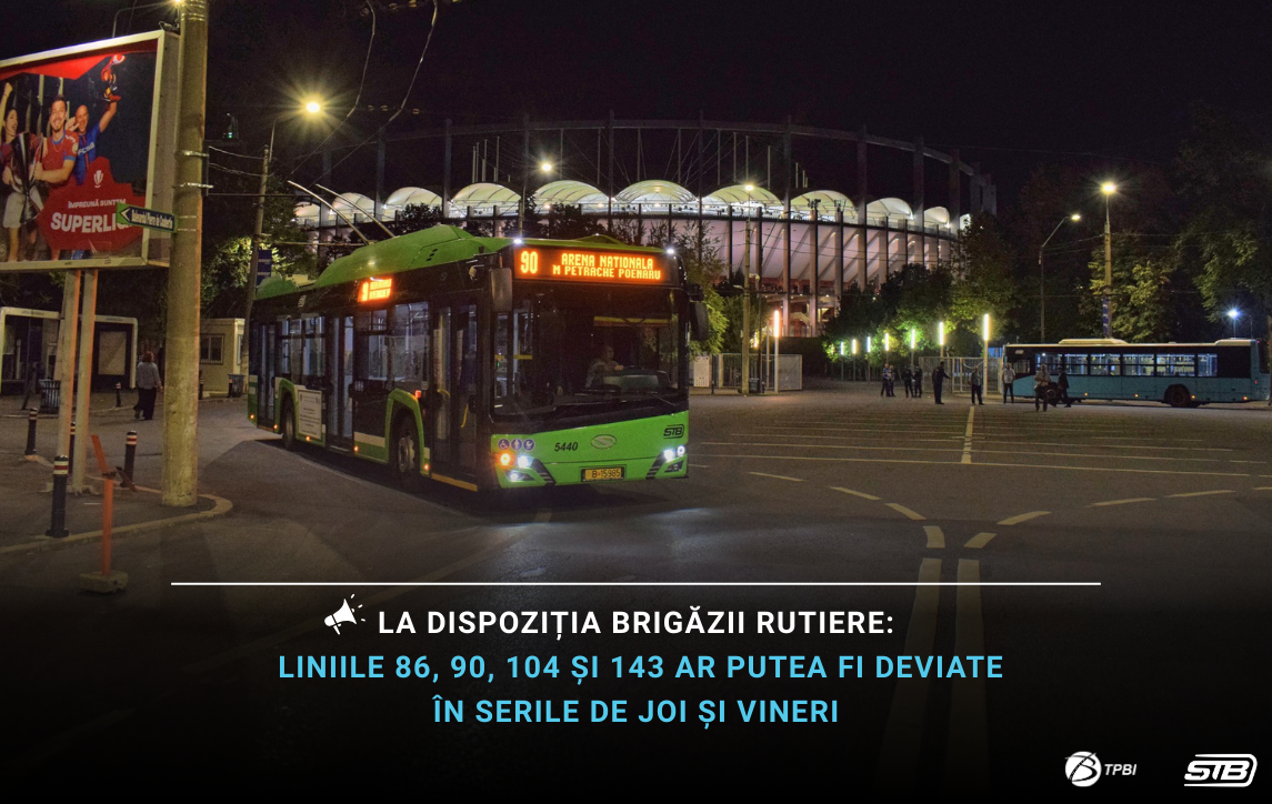 TPBI precizează că liniile 86, 90, 104 și 143 ar putea fi deviate, numai dacă situația o va impune, la dispoziția Brigăzii Rutiere de Poliție.