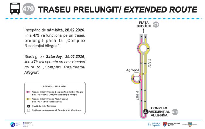 De sâmbătă, linia 479 va fi prelungită până la Complexul Allegria