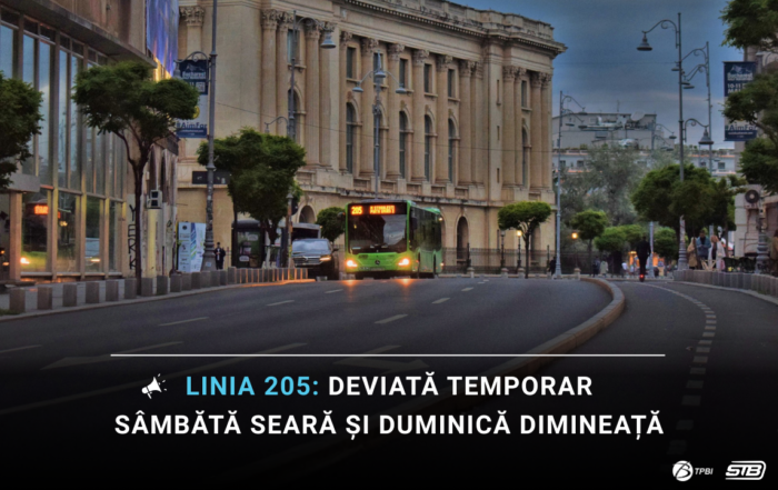Traseul liniei 205 va fi modificat temporar, pe sensul spre Piața Unirii, în perioada 21.02.2026 (începând cu ora 20:00)-22.02.2026 (până la ora 08:00), ca urmare a restricționării traficului rutier pe Calea Victoriei (tronsonul cuprins între [...]